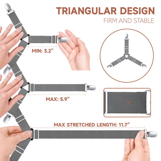 Bozenu Bed Sheet Straps, Upgrade Fitted Bed Sheet Holders for Corners, Non Slip Sheet Clips Grey 4Pcs